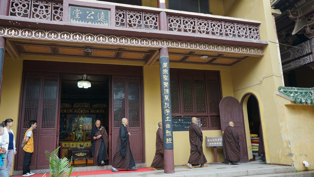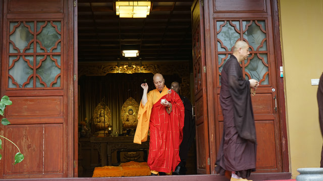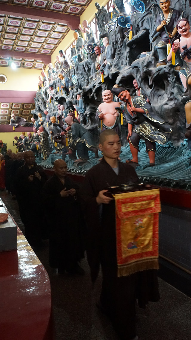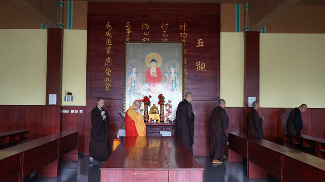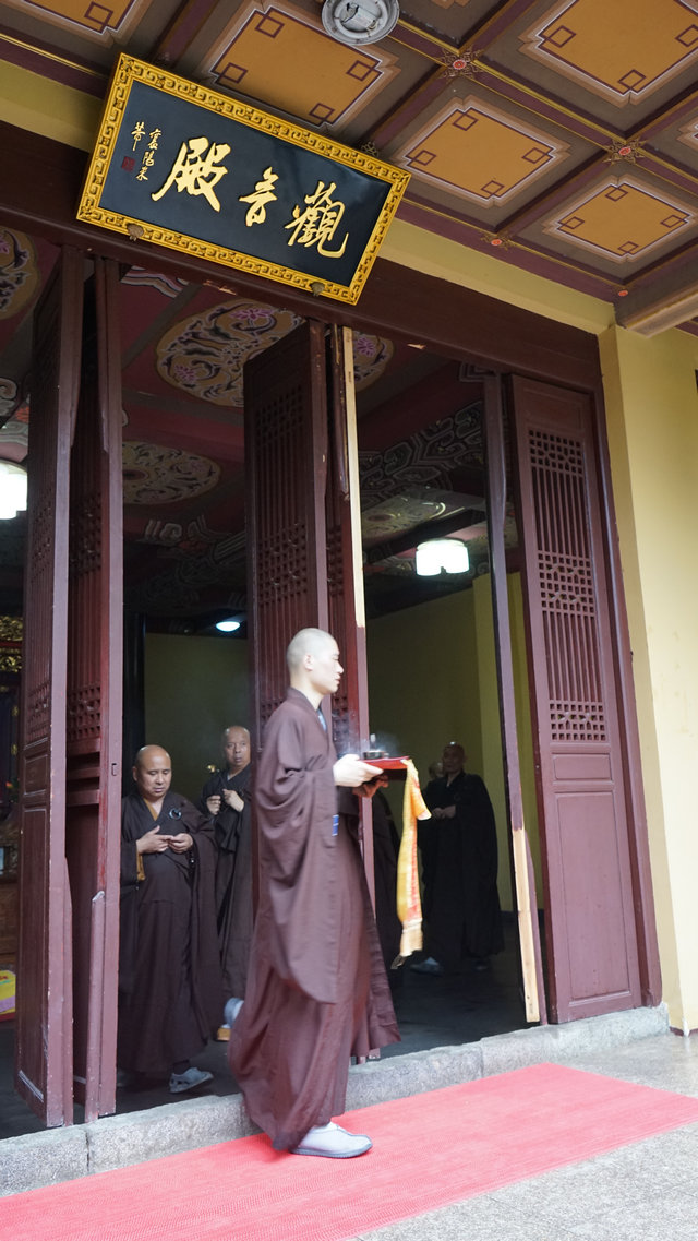当天正值农历四月初一,上午,常住师父在大雄宝殿举行了供佛仪式,随后,又在护法殿韦驮菩萨像前、客堂伽蓝菩萨像前、斋堂大圣紧那罗王菩萨像前、远公堂慧远祖师像前进行了上供。部分菩萨戒戒子也参与了上供。
