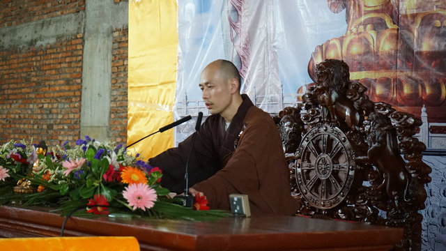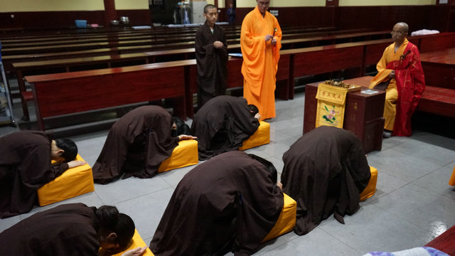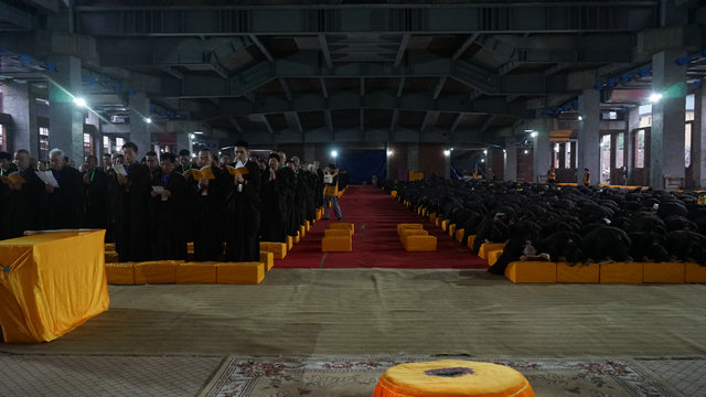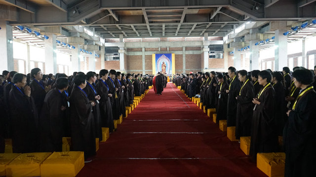 至7时45分,教授师开示完毕,维那师父带领众戒子唱念“愿以此功德,庄严佛净土”的回向偈,并礼谢教授师。教授师回寮。戒子继续拜愿,至8时30分结束。