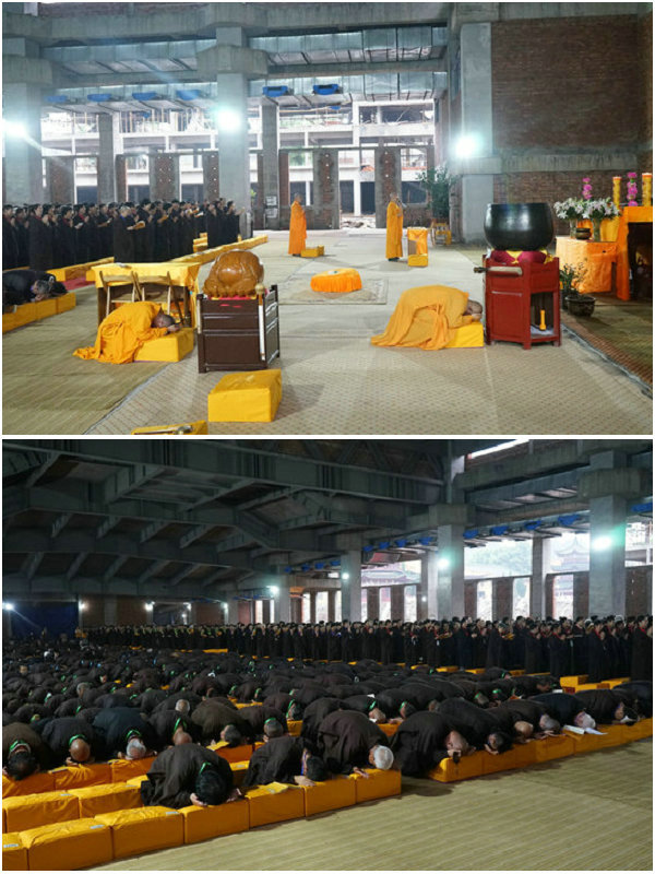 晚上6时30分至7时,由开堂师父、维那师父教唱,众戒子进行了拜愿,祈请娑婆世界的教主本师释迦牟尼佛为戒子作得戒和尚、文殊师利菩萨作羯磨阿阇黎、弥勒菩萨作教授阿阇黎,祈请十方一切如来为戒子作尊证阿阇黎、十方菩萨作同学伴侣。