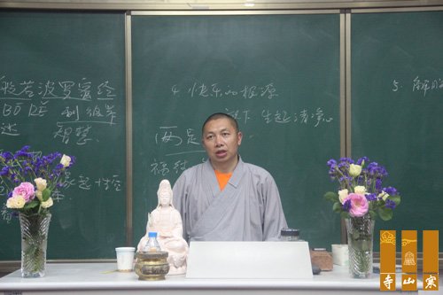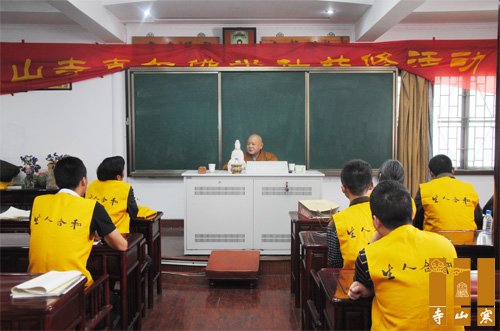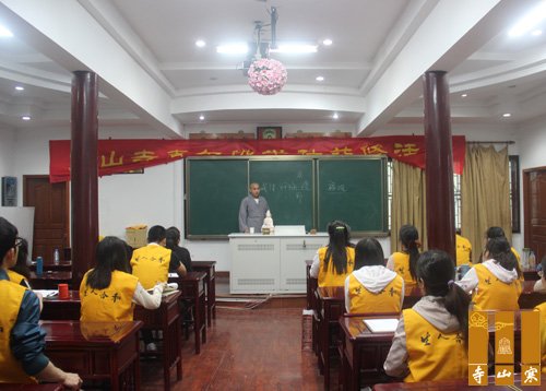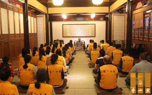 2015年5月3日上午,寒山寺秋爽大和尚来到寒山寺讲堂为参加共修活动的学员开示并亲切交流。