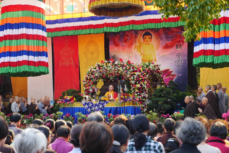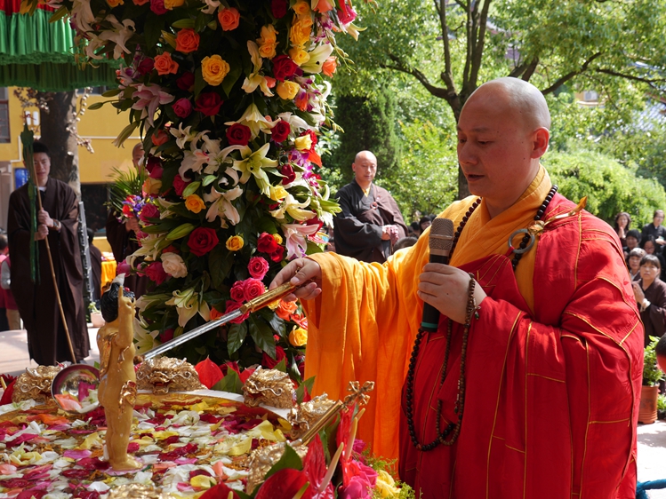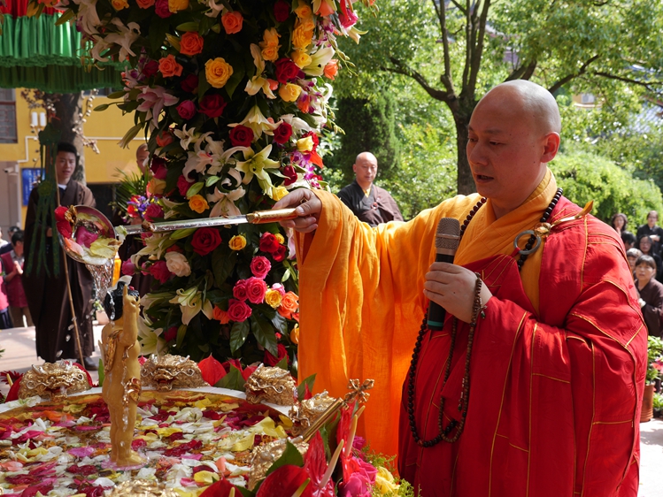 粤以乙未之年,建巳之月,宁波慧日禅寺,躬逢释迦圣诞。三圣殿前,锦灿华芳,沉香瑞脑,朱波素澜,浴以佛身。