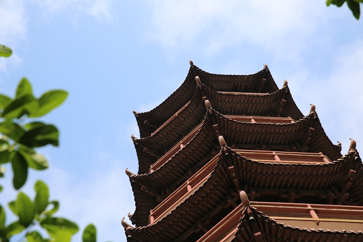 恭承悲智兮,遗芳慧日。奇苑佳楠兮,注以甘泉。清醴濔濔兮,溯源而穷。原隰郁茂兮,于焉觉树。觉树鸣风兮,释尊趺坐。眉间白毫兮,遍照金光。雨曼陀罗兮,芙蓉菡萏。天清日晏兮,凤凰集栖。云起波骇兮,金龙蜿蟺。栴檀香风兮,悦可众心。