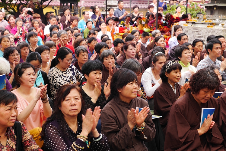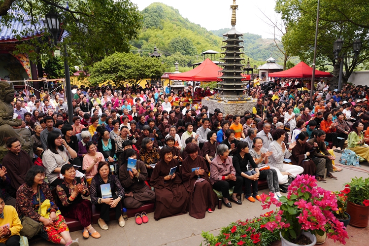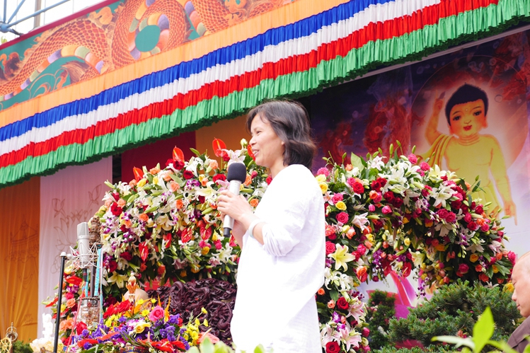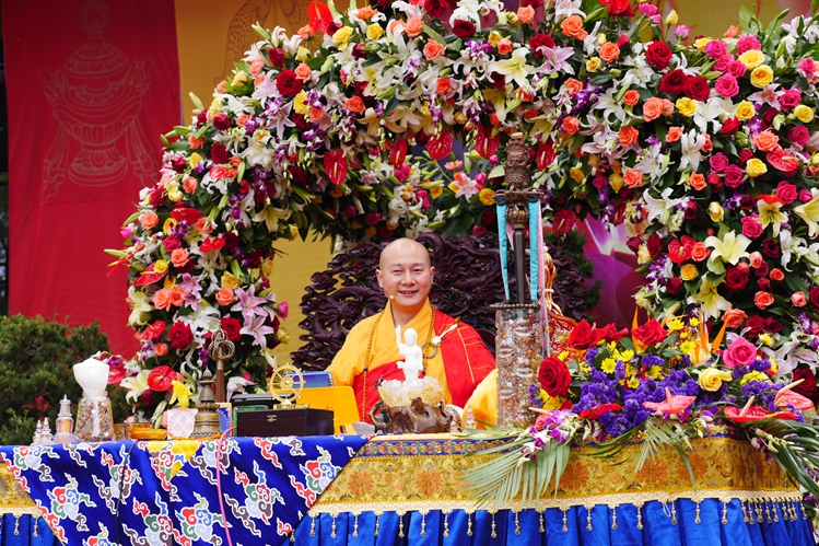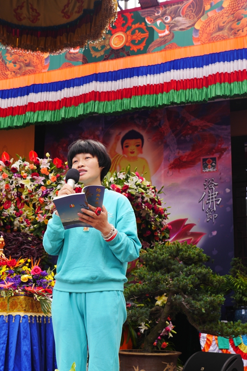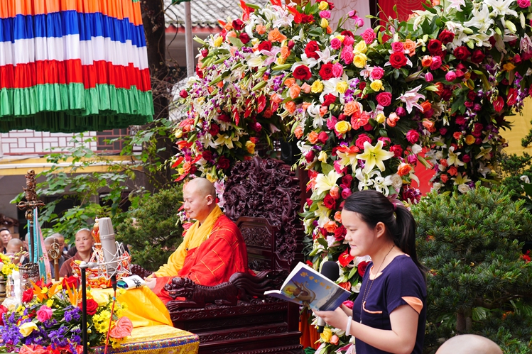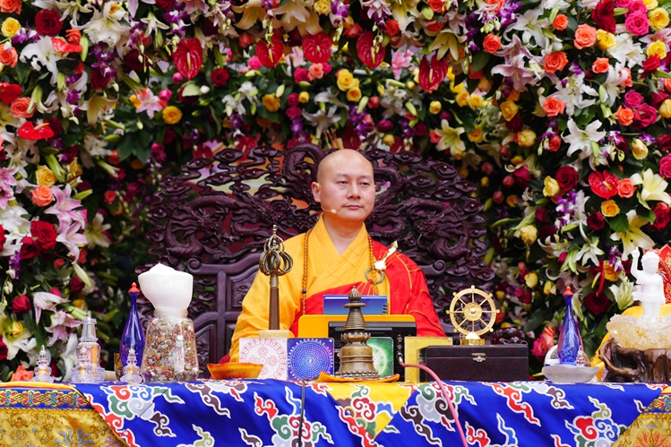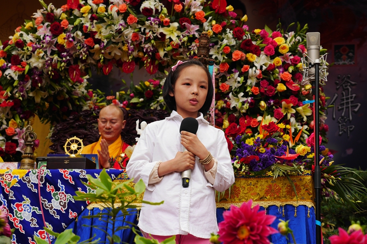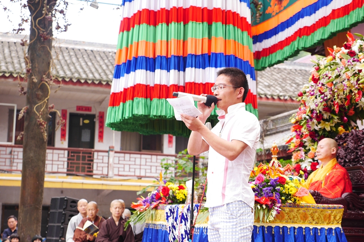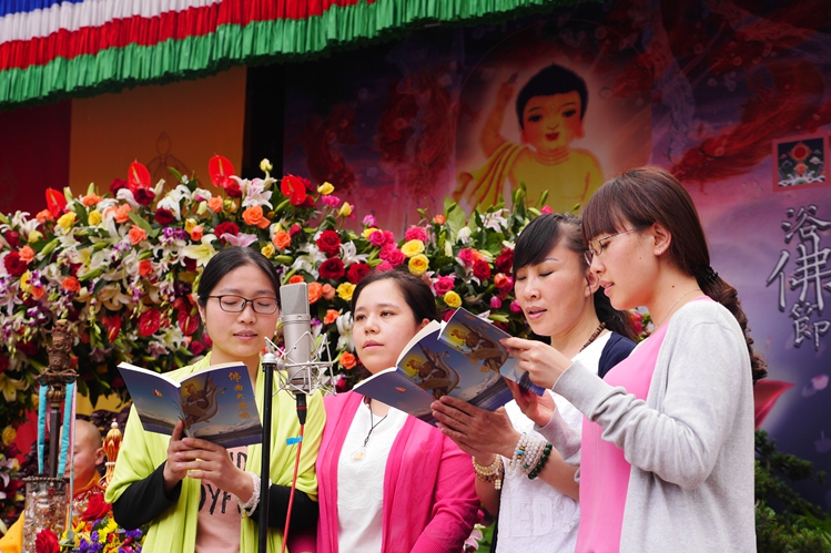 精彩开示后,佛子踊跃上台,以歌呗颂佛德。普贤十大愿王的第二大愿,就是“称赞如来”。《法华经·方便品》云:“或以欢喜心,歌呗颂佛德,乃至一小音,皆已成佛道。”