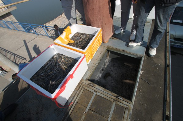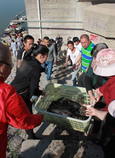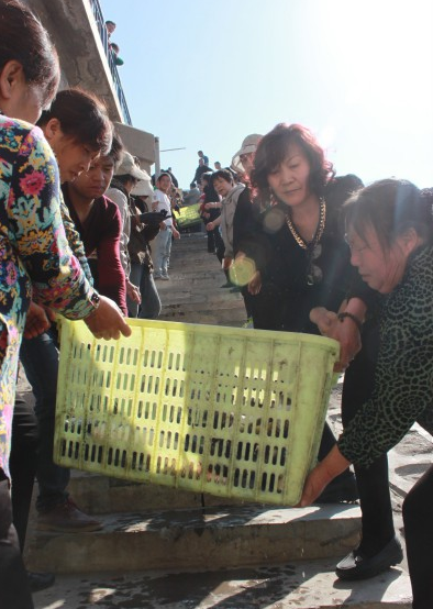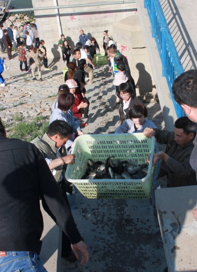 排起长龙 有秩序的进行放生活动