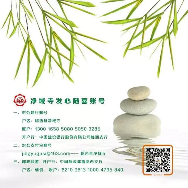 一、对公建行账号(需柜台办理)户名:临西县净域寺 账户:13001658508050503285 开户行:中国建设银行股份有限公司临西支行