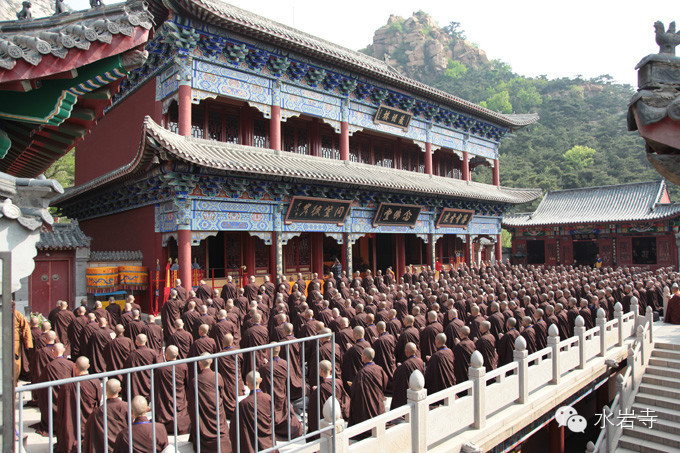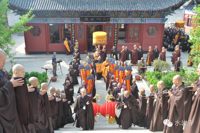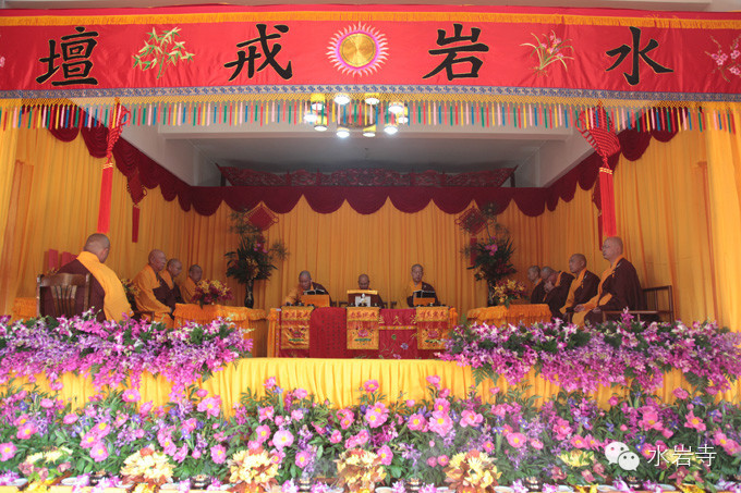 2015年4月30日(农历三月十二)上午,水岩寺传授三坛大戒举行了传比丘戒(登比丘坛)仪式。未来二天所有新戒沙弥将完成这个神圣的仪式,正式成为一名具足威仪的比丘僧。