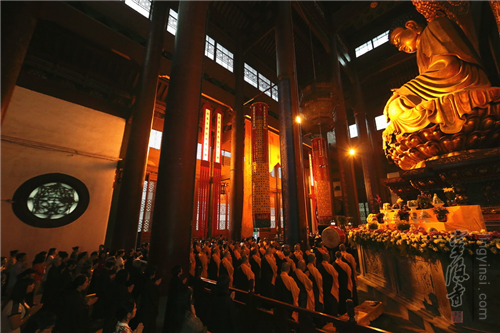 一时间,经声佛号,梵唱清扬。四众弟子,合掌礼赞,感恩本师释迦牟尼佛慈航倒驾,降生此娑婆世界。苦海作明灯,照破千年暗夜;人天同欢喜,妙法普度群生。