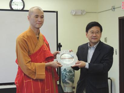 恒律法师则为这羣远道而来的访客开示指出:“佛”在梵文里就是指觉悟者,能够自觉觉他、觉行圆满。恒律法师表示,宗教出版社出版书籍愿意利益中国、世界与衆生,这就显示大家都有菩萨心。佛法不是推算出来的,而是要在生活中去体验,用心实践。例如讲到因果的道理,人行善时身心舒畅;做见不得人的事时,心里黑暗,身体紧张,当下果报已显。因此学佛最重要就是自觉,自觉圆满就能觉他,继而觉行圆满。