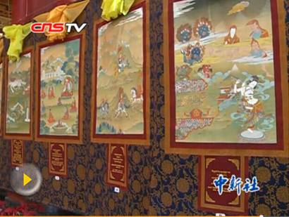 【解说】此次展出的唐卡内容包括《香巴拉历代国王》系列唐卡、《四部医典》系列唐卡和16罗汉系列唐卡等。这些唐卡制作精良,风格迥异,形象的展示了藏民族的文化、历史和宗教信仰等。其中,藏医经典《四部医典》系列的174幅唐卡是目前为止,最全面的一套《四部医典》挂图唐卡画。