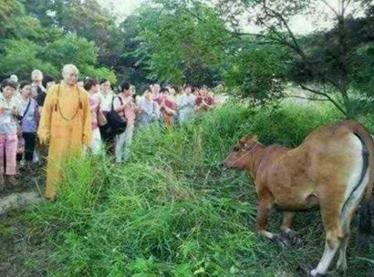 怀孕母牛因被法师带领信众放生当场下跪感恩