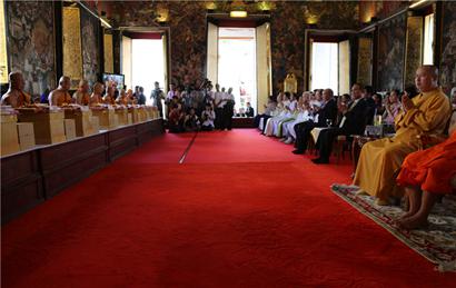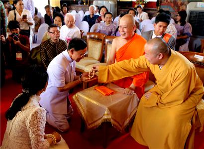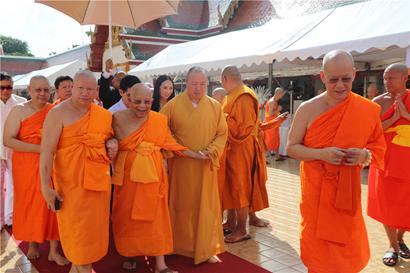 出席此次升座盛典的领导嘉宾有: 中国佛教协会副会长、海南省佛教协会会长、深圳弘法寺方丈印顺大和尚,泰国代僧王颂德•帕摩诃拉查曼克拉赞长老,副僧王帕•蓬玛西提长老,僧伽委员会诸山长老及所有委员,泰国前总理英拉,泰国前总理颂猜, 泰国前副总理加都隆,前副总理利哇·堪木隆,前副总理苏达拉,国王秘书长阿萨·萨达新, 泰国前国会主席乌基,国家监督委员会披实等政要以及本焕学院执事培训班全体法师代表。(文:南海佛教图:铂净)