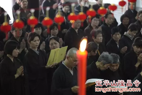 2015年6月7日,宝华山隆昌寺在家居士菩萨戒圆满,来自全国各地数百名信众求授居士菩萨戒。依次受四不坏信法、三聚净戒、十善戒及十无尽戒。 江苏宝华山隆昌寺方丈心平大和尚为在家善男信女传授三皈五戒居士菩萨戒。