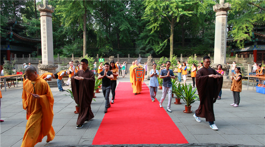 2015年6月7日,星期天,成都文殊院举行2015年第五次皈依法会。法会恭请文殊院西堂本一法师为主法阿奢黎。共有518名善信在这次法会中皈依三宝,成为一名“正式”的佛教徒。