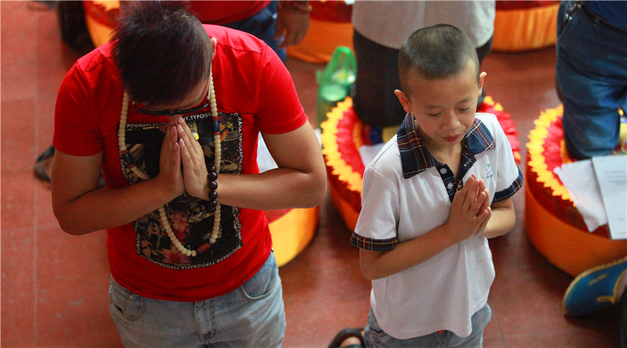 李先生是一位学佛多年的居士,此次皈依法会特地带着自己家的两个不满十岁的小孩来参加,让他们皈依三宝。记者采访两个孩子问:你们为什么来皈依呀?两个孩子带着童真的笑脸抢着喊道:佛菩萨能让我们考100分!孩子的父亲亲切的将两个孩子拉向身边:现在的孩子学业特别繁重,自己希望让孩子通过学习佛法来增长智慧,当然能提高学习成绩更好,即便不能,也能让孩子透过佛法对生活有更多的领悟。李先生表示,今后父子三人会互相勉励在学佛的路上坚持下去。