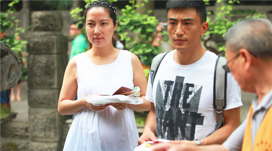 在等候的人群中,一位“准妈妈”特别引人注目。李女士8月份就要做妈妈了,她是山东人,在四川师范大学研究生毕业后,就留下来做了“成都媳妇”。目前是高新区一所学校的老师。她在大学期间就开始学习佛法,先生也在她的影响下开始学佛,今天和先生一起双双皈依,特别高兴。