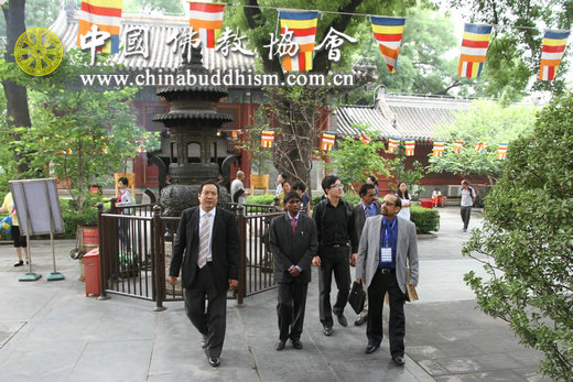 普拉萨德先生一行首先参观了广济寺的天王殿和大雄殿。随后,演觉法师在怀远堂亲切会见了普拉萨德先生一行,双方进行了亲切友好的座谈。