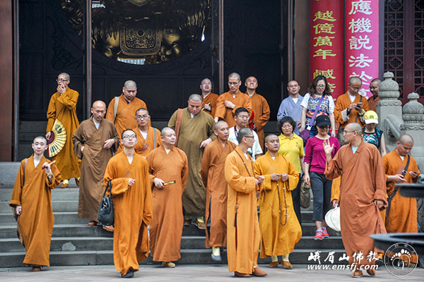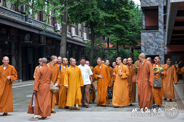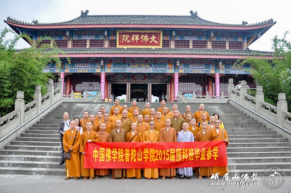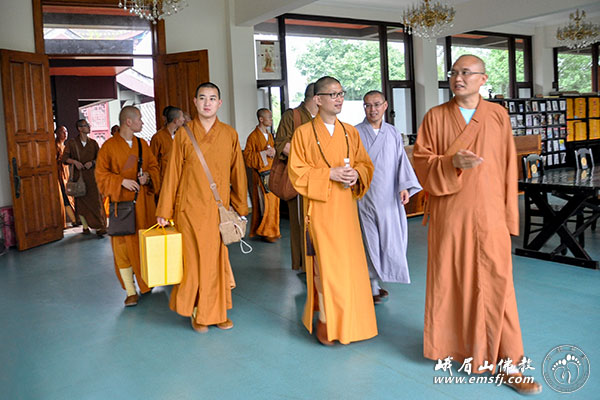 2015年6月16日,由普陀山佛学院教师及学僧一行37人组成的参访团,在副院长会闲法师的带领下赴峨眉山朝拜普贤菩萨,并参访峨眉山佛学院。峨眉山佛学院副院长满霖法师、法源法师,办公室主任昌全法师热情地接待了会闲法师一行。在三位法师的陪同下,参访团先后参观了大佛禅院、佛学院、图书馆、峨眉讲堂。