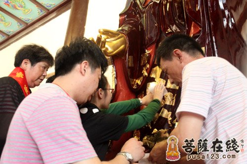 宁国禅寺众护法居士共同发菩提心,至观音殿为观世音菩萨贴金,愿众善信同发心,作大布施者,得菩萨加持,如意吉祥。
