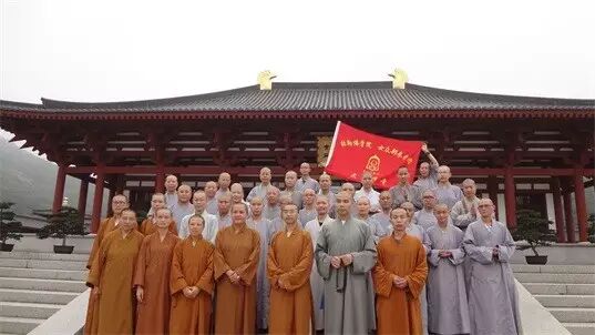 弥勒佛学院全体法师学僧与普陀山佛学院男众部法师合影