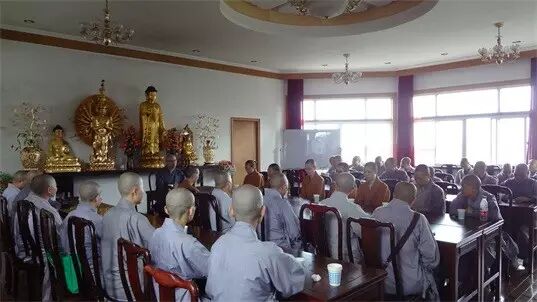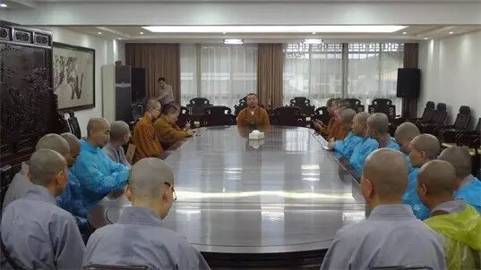 院长妙治法师在法雨寺为法师学僧讲解法雨寺历史由来