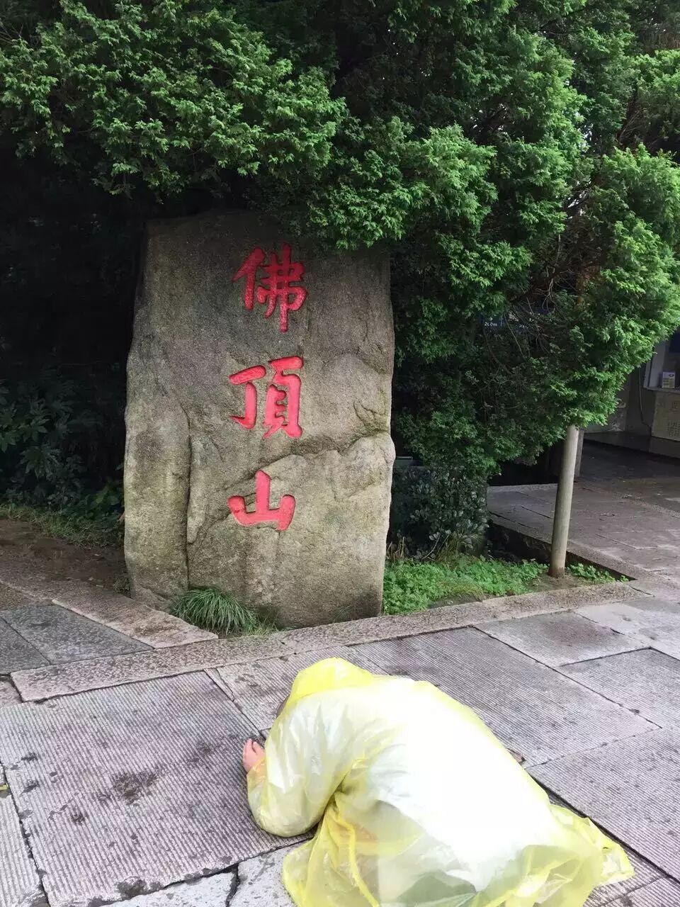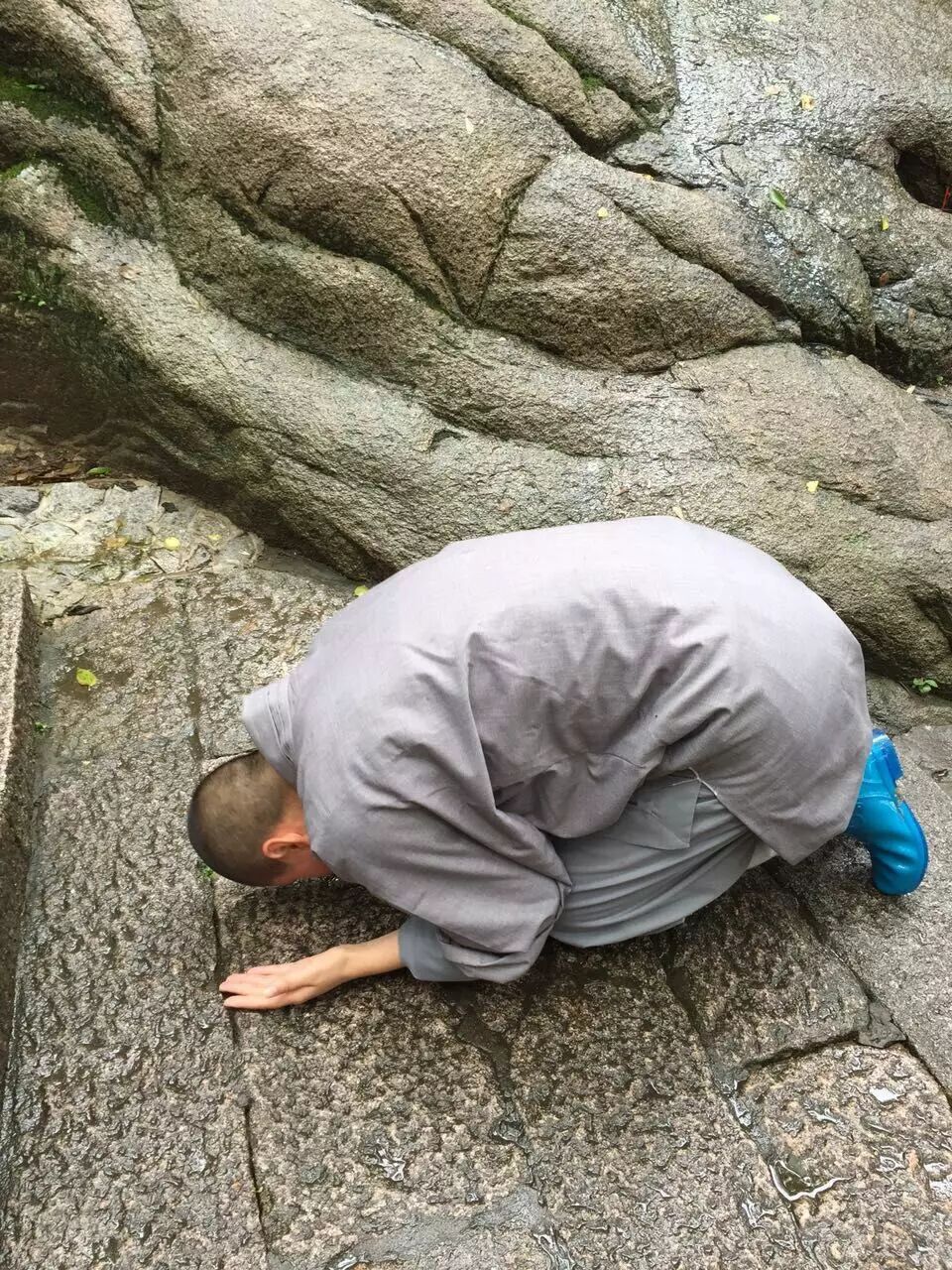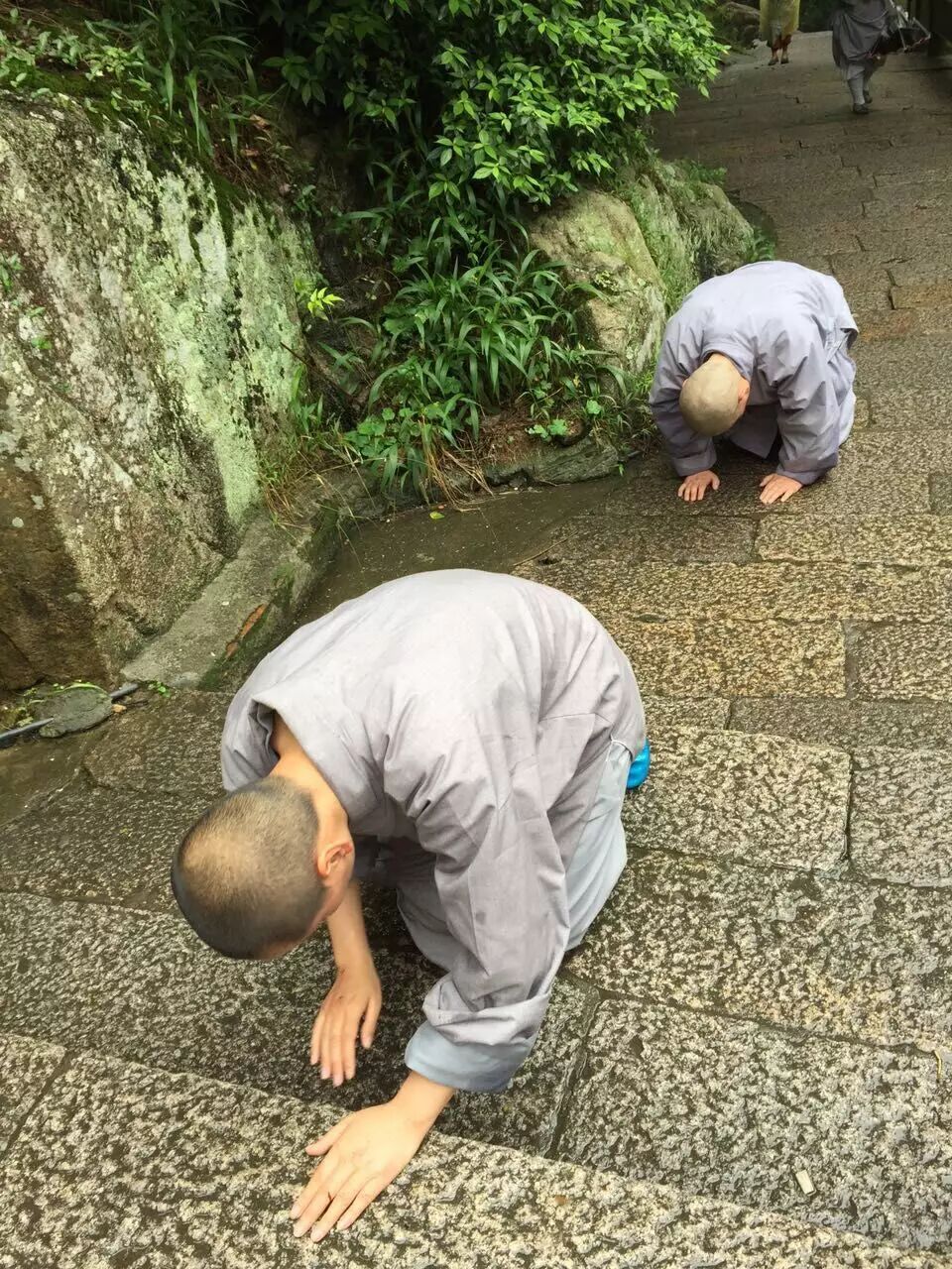 由于石板地潮湿和天气阴雨不定三步一拜