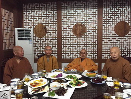 (从左至右)涤瑕长老、天童寺方丈诚信法师、广修长老、修祥长老