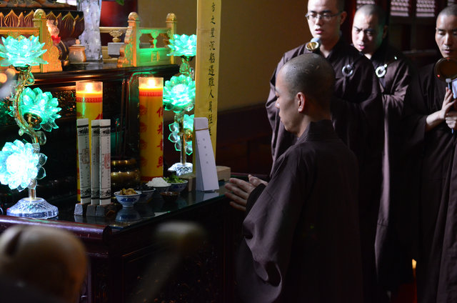 大众在“东方之星”沉船遇难人员往生莲位前进行回向