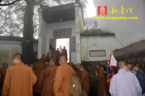 下午13时许,全体团员参访禅宗南宗派著名的传法胜地、被誉为“天下法院”的福严寺,系南岳衡山佛教开山祖师、天台宗的三祖慧思大师所创建。‘六朝古刹,七祖道场’、‘千年公案磨镜台’,禅宗七祖怀让禅师曾驻锡于此,在祖师塔墓前,界象法师领众诵经回向,追忆先贤。古有南岳怀让、马祖道一、石头希迁、天台慧思大师、丹霞天然禅师,今有虚云禅师、太虚大师、宝昙和尚、惟正长老,南台福严,法源法院,圣教千载传承,振奋人心。
