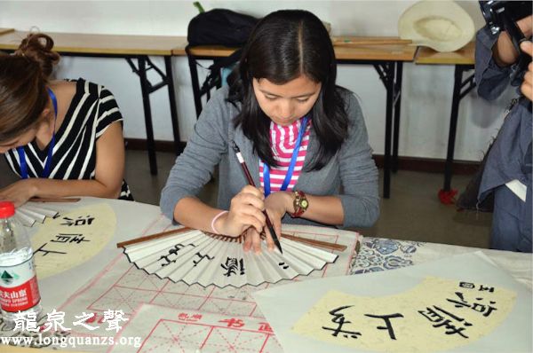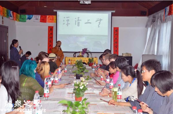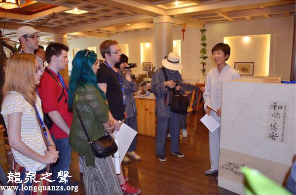 近日,美国西肯塔基大学留学生一行18人参访北京龙泉寺。上午伴随着古朴典雅的音乐,大家体验了中国传统文化书法的魅力。下午,在义工带领下参观了图书馆、动漫中心、仁爱慈善、翻译中心等,并品尝了中国古老的茶道,贤增法师与大家进行了座谈交流。(文:成蹊)