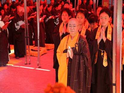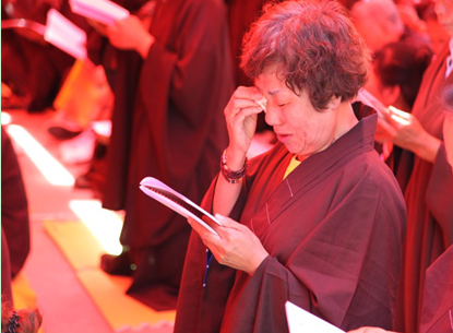 三时系念法会最后,师父恭宣三宝功德文疏,祈愿诸佛摄受。籍佛、法、僧力量,使六道众生通过听经、闻法、忏悔、修行,共成佛道。
