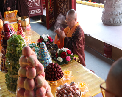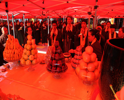 2015年7月18日,夏令营的第五天,为了超荐夏令营学子历代宗亲、累世父母及身内外一切有缘众生速脱六道,直超生死,往生净域,永往安乐,并祈愿学子蒙佛力加持业障消除,福慧增长,诸事顺遂,善愿成就,果城寺隆重举行三时系念、慈悲施食及放生法会。