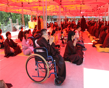 是日天空湛蓝,祥云朵朵,800余名学子及信众,不畏酷暑,本着对佛法的正信和对众生的慈悲,圆满护持和参与了法会。