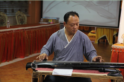 夕阳西下之时,悠扬高雅的古琴乐曲从果城寺三圣殿传出,经过一天法会洗礼的学子们,再次回到三圣殿,认真聆听刘文涛老师讲解的古琴与琴道。通过名曲欣赏及意境赏析,学员们认识了古琴,走进了中国古琴的世界,加深了他们对中国传统文化的热爱,培养了他们的谦谦君子之风。