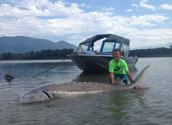 加拿大9岁男孩罗斯曼在大不列颠-哥伦比亚省奇利瓦克附近的弗雷泽河捕获体重超过272公斤的白鲟。(网页截图)
