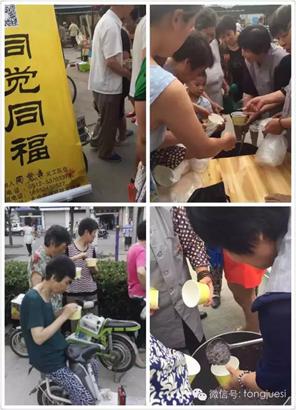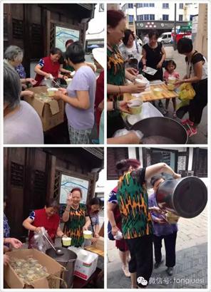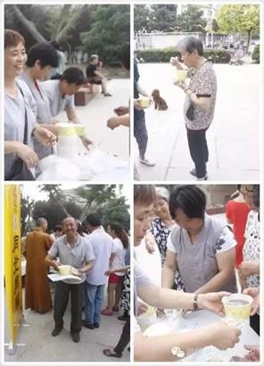 2015年7月16日,恰逢农历初一,“同觉人”在同觉真三昧素斋馆及市区、浏河、沙溪、双凤、浮桥五大镇区同时启动“爱心早餐”免费布施活动,“爱心早餐”不仅有冰爽的绿豆粥,还有新鲜的同觉手工素饺,在这炎炎夏日送去一片清凉,与大众结欢喜法缘。让我们一起来领略各镇同觉人风采