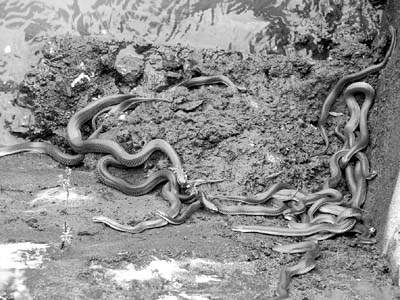 记者见到这些蛇的时候已经是昨日下午,它们被安置在动物园猛兽区。
