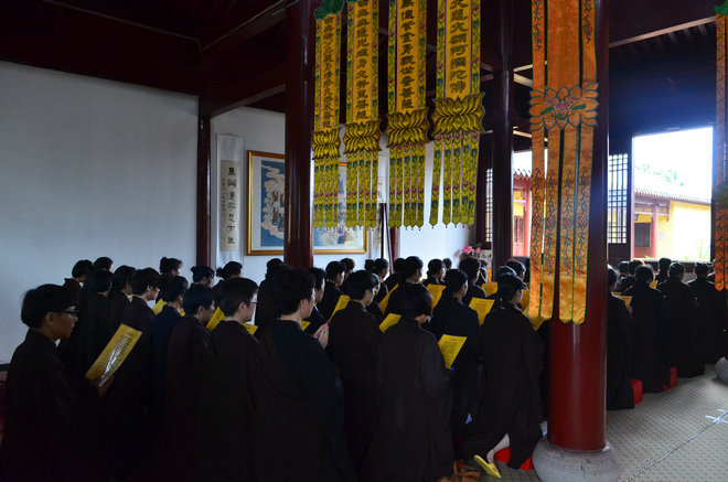 2015年7月11日,在祖庭后山上的闭关中心,近百位净业行人经过10天紧张、充实的百万佛号闭关念佛,于下午2时圆满出关;随后在德天法师主持下,参加了三个多小时的闭关感想交流活动。