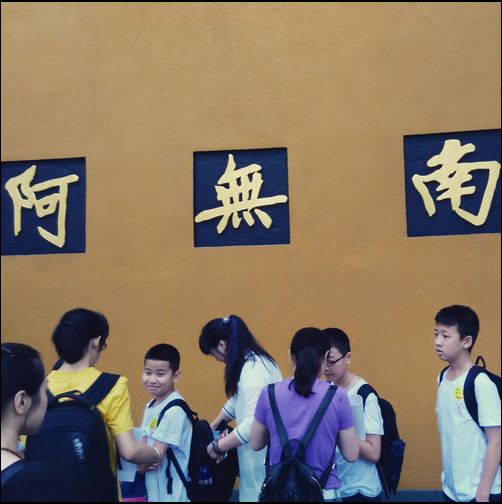 放生课上每位营员齐诵阿弥陀佛圣号祝福被放生的鱼儿们,祝福它们以后能在七甲寺的放生池里一直快乐得生活下去