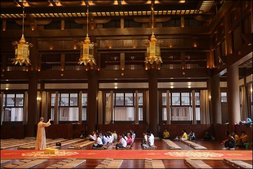 此次夏令营中,安福寺住持达照法师不仅为营员们开设了《中华民族复兴之光》佛法讲座,还为营员们主持了放生活动和点燃心灯仪式。同时七甲寺则光法师每日主持早课仪轨,还带大家上了打坐禅修课程。此外,学员们还在则旭法师的指引下学唱了《三宝歌》、《安福利生》、《永嘉证道歌》等,得到了极美的心灵净化。学员们还学会了《八段锦》,不仅有助于消解学习困疲,也健康了身心。