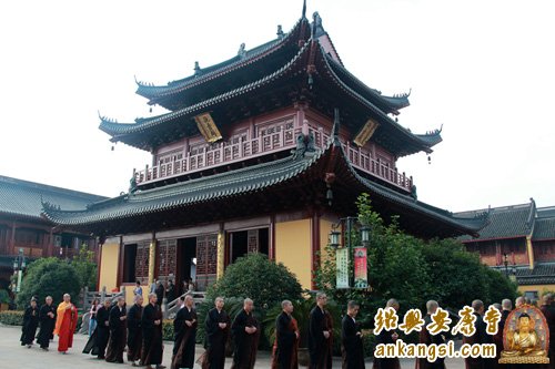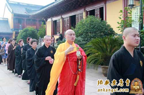 为弘扬观世音菩萨慈悲济世的精神,广度有情的宏愿,为祈求世界和平,风调雨顺、家庭祥和。2015年7月27日下午(农历六月十二),绍兴安康寺隆重举行观音佛七净坛仪式,寺内钟鼓齐鸣,场面肃穆庄严。