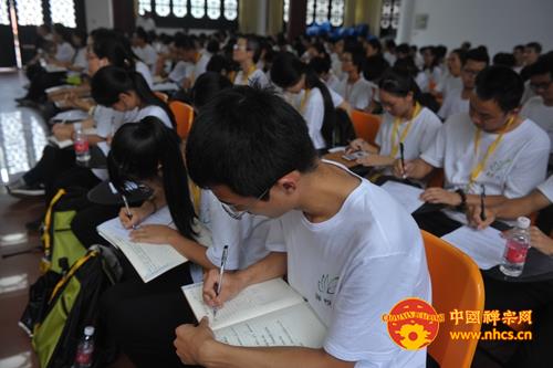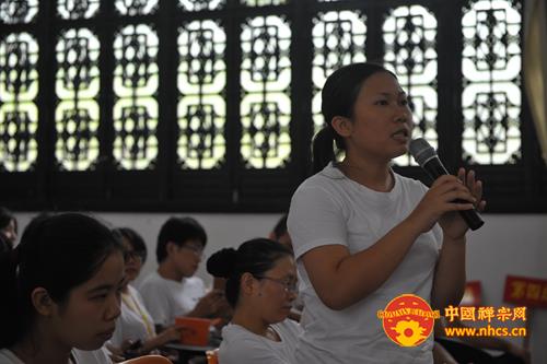 来自华南理工的营员代表发言,这位营员说,感恩南华禅寺、感恩传正大和尚、感恩辅导法师们的教诲、感恩义工们的帮助。三百多人有缘聚在福地曹溪,在七天的学修生活中,从体验生活到认识佛教,从思考人生到走进佛法,找到心的皈依之处,这是一场心灵之旅,也是一场开启人生的智慧之旅!即使离开寺院,也不会忘记法师们七天来的教诲,在以后的人生道路上,一定怀着感恩的心,将所修所学更好的奉献社会!