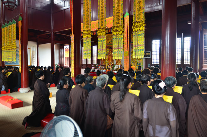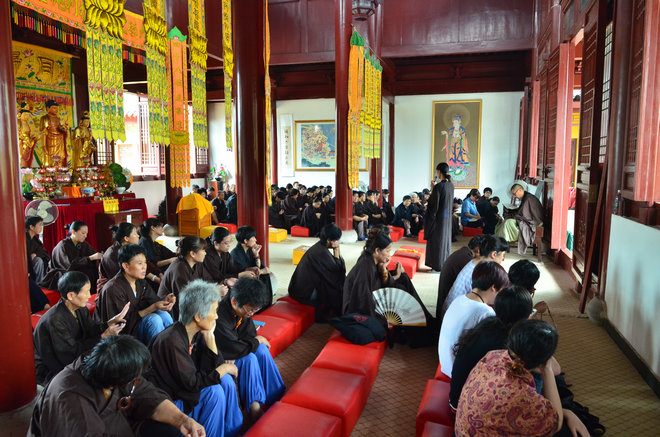 时值盛夏,高温多雨,与会法众痛念苦空无常,放下尘缘挂牵,在闭关苑护关人员的精勤护持下,以深信切愿摄心念佛,收获了宝贵的往生资粮。25日下午2时,出关人员齐聚香光殿,在德天法师主持下进行了庄严的大回向,然后参加了两个多小时的闭关感想交流活动。交流中,十余位四众弟子分享了闭关的感受和法喜。