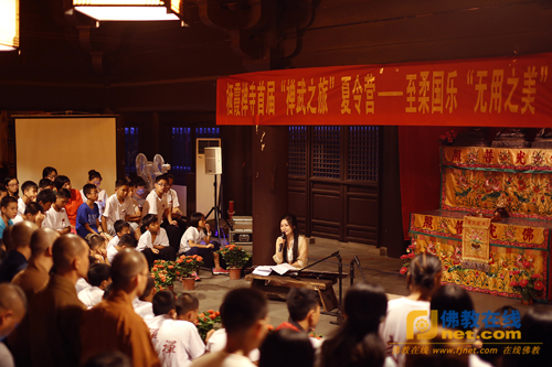 2015年7月19日晚上,“至柔国乐无用之美琴筝艺术讲弹音乐会”在桂林栖霞禅寺藏经阁二楼举行。“禅武之旅”夏令营营员、法师和桂林的音乐爱好者等一百多人参加了音乐会。