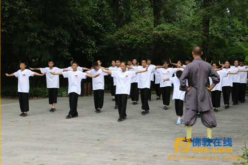 这次的“禅武之旅”夏令营的营员中,有着各年龄层次的功夫爱好者慕名前来学习。按照营员年龄的不同,法师因材施教制定了不同课程内容:第一堂武术课的内容均为少林拳法、少林基本功练习。第二节武术课按照年龄分别讲授不同内容:成年组开始学习少林养生功《洗髓经》,少年组则强化练习少林功夫基本功法。