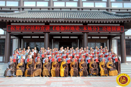 2015年7月7日8时,陕西扶风法门寺佛学院闻思楼大讲堂清净庄严,传统升大座讲经模式在这里隆重举行,六人出班恭迎贤空法师,其余师生齐唱佛号恭候。随后,贤空法师随着迎请队伍缓缓步入讲堂,顿时梵音响起,唱赞、拈香、礼佛、升座、盘腿、缘念等一系列上课仪轨,使整个场面显得格外庄严肃穆。采用《瑜伽师地论科句披寻记汇编》当教材。授课过程中法师不下座,不写板书,先读一段原文,然后逐字、逐句、逐段解释经典原文,这无疑对提高学僧们的古文水平和对佛经的理解能力大有很大帮助,同时也对提高同学们的记忆力、理解力、阅读力、思维力等。
