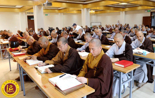 陕西扶风法门寺佛学院沿用传统升大座讲经模式授课