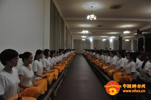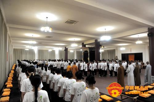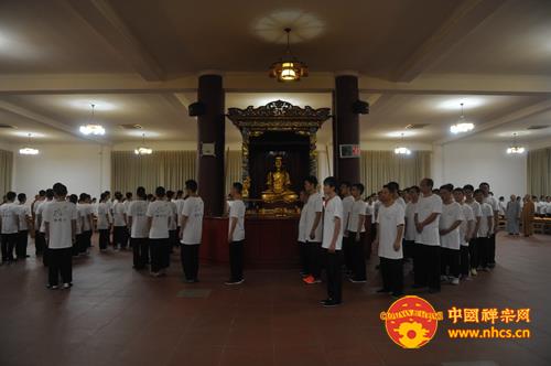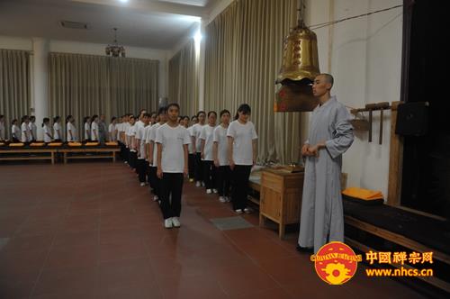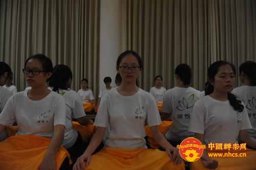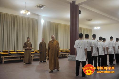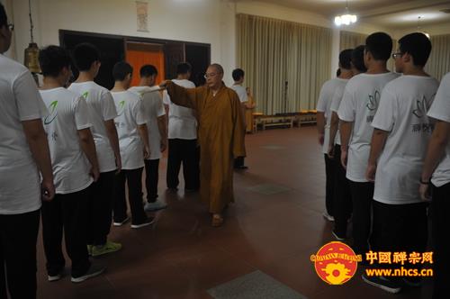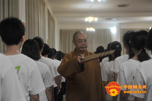 大和尚开示说,烦恼根源在于贪嗔痴太多,执着的太多,而禅修是破除我们的烦恼的有力工具。同时,大和尚还引用“十方同聚会,个个学无为。此是选佛场,心空及第归”启示营员们,告诫大家:“入此‘选佛场’,要珍惜机会,调适身心,参‘念佛是谁’并专注一境,不起分别,用清净心去面对一切,保持自己的心性不乱。”他还开示说,佛教讲空,并非是什么都不要,而是要把“我”、“我相”放下、忘掉,这样,自然能得解脱,得大自在。