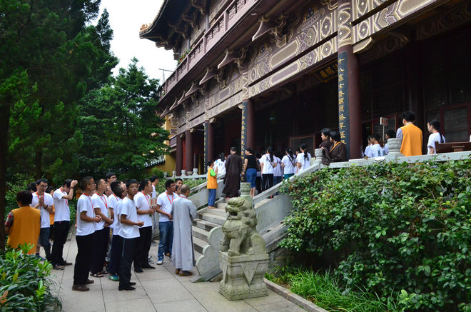 为使营员们得到一次弥足珍贵的成长、学习经历,树立正确的文化理念和净土信仰,增福长慧,东林寺合全寺之力进行了周到、细致的先期准备。数日来,东林寺东林莲社、护法团等相关部门组织上百位人员对学员们进行了殷勤、热情的接待与服务,且于17日晚为营员们安排了一场内容全面、丰富的预备会。18日清晨,营员们依照活动安排积极参加了经行念佛;早饭后,青年们怀着喜悦与新奇之心,在分组辅导员带领下参观了这座名胜荟萃的古刹。在祖庭的美好时光里,青年们逐渐收摄年轻的身心,融入到了这次清凉、祥和的夏令营生活。