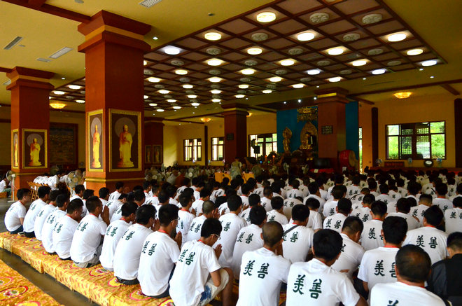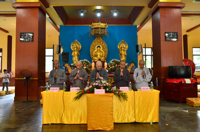 开营仪式上,法师们带领营员们齐唱三宝歌