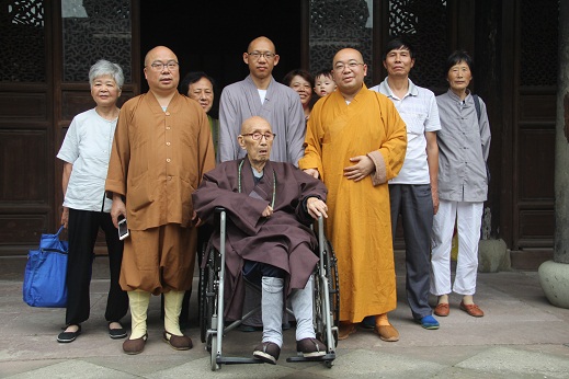 7月20日,浙江省佛教协会咨议委员会主席、宁波天童寺退居方丈九十四岁高龄的广修长老,法驾伏龙山。